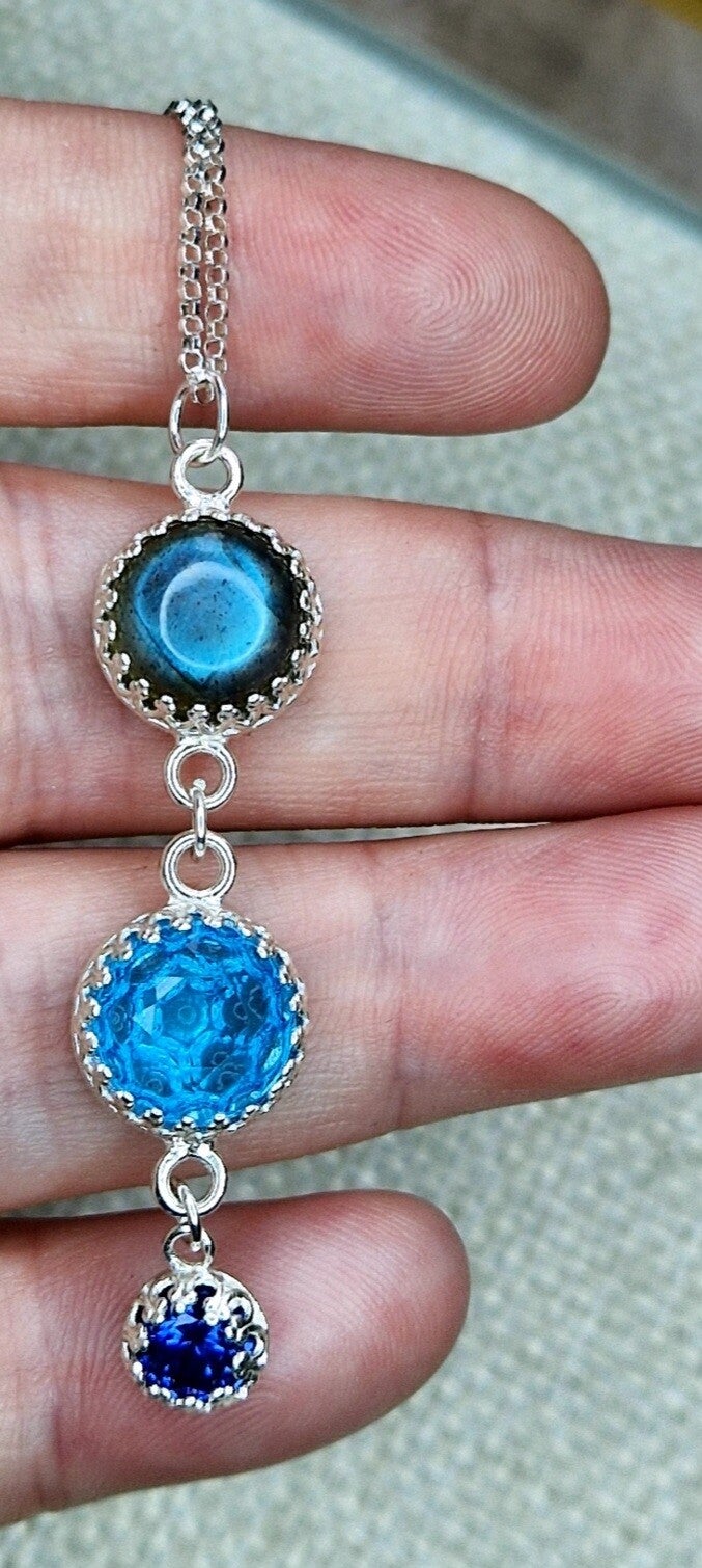 Here we have labradorite to the top,topaz in the centre & a tanzanite to the bottom, these 3 stones compliment each other so well.