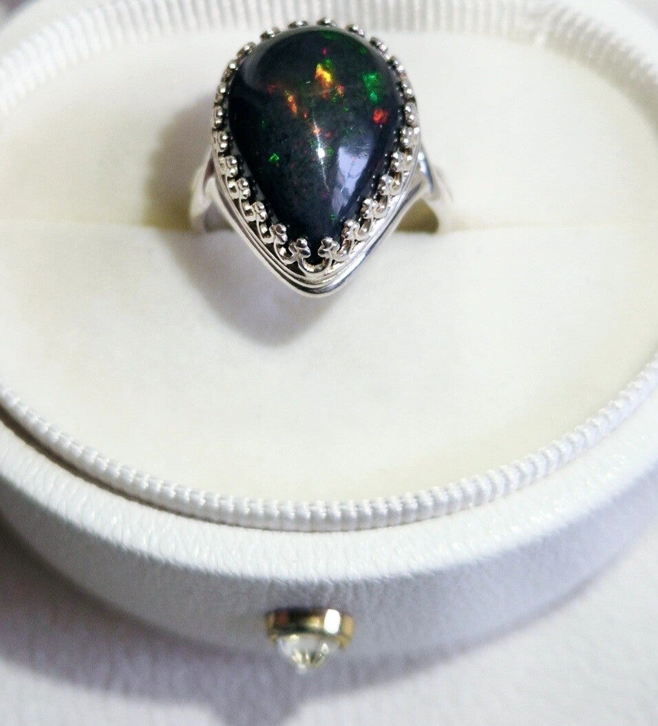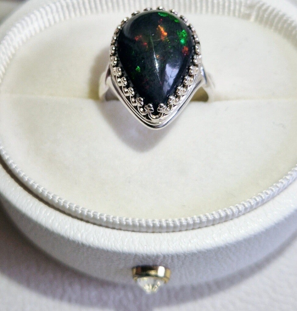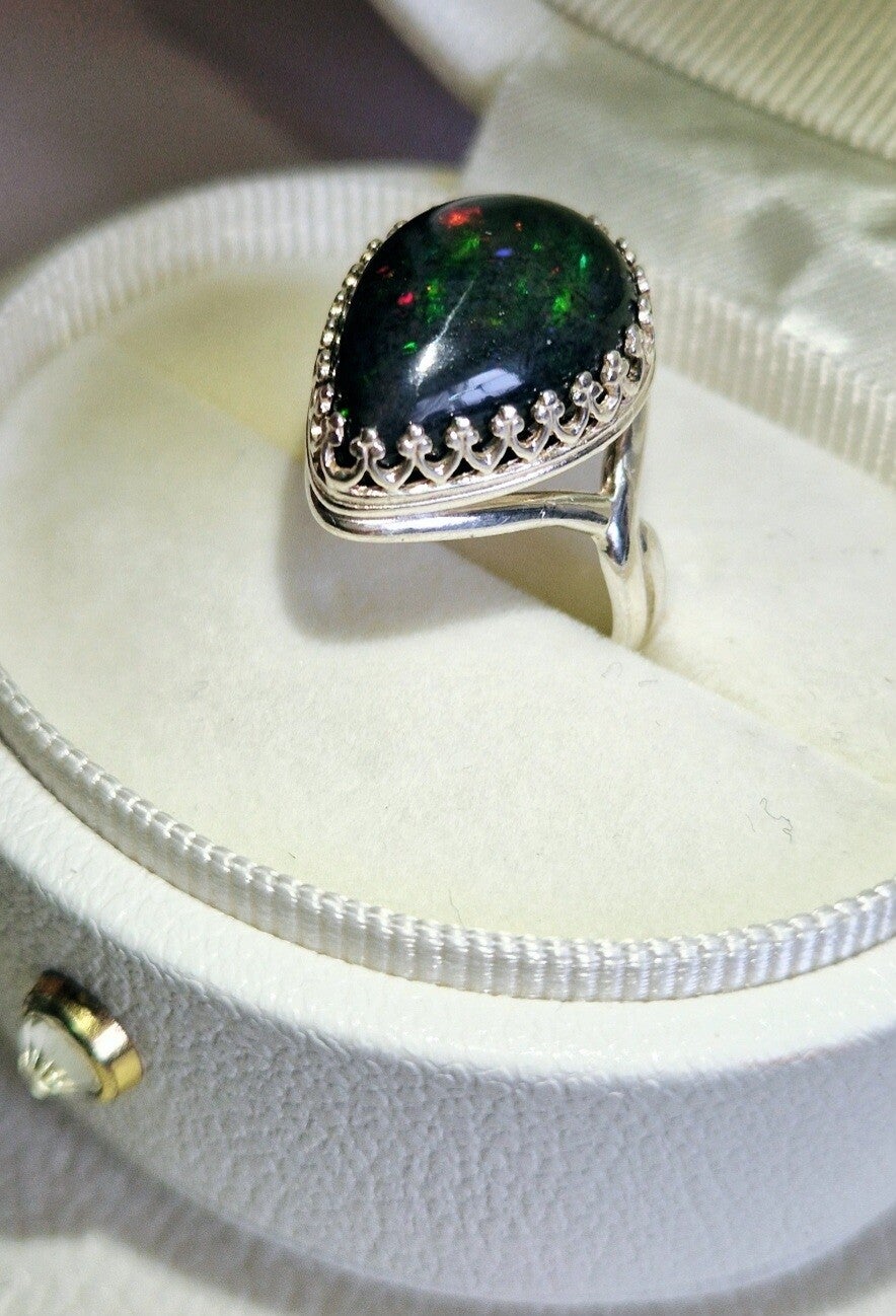 Very beautiful ethiopian black opal set into a sterling silver ring.