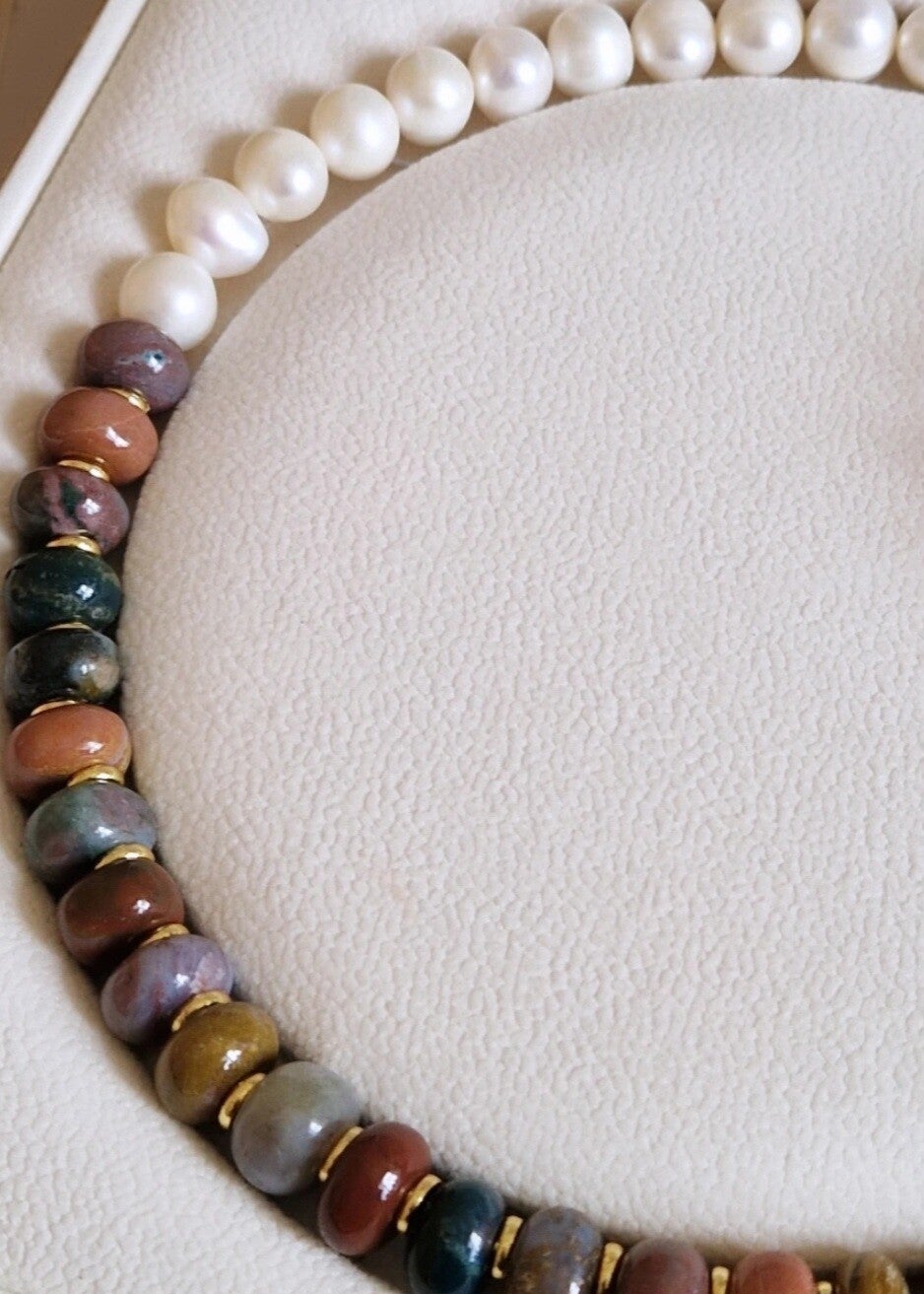 Freshwater Pearl & Ocean Jasper Necklace