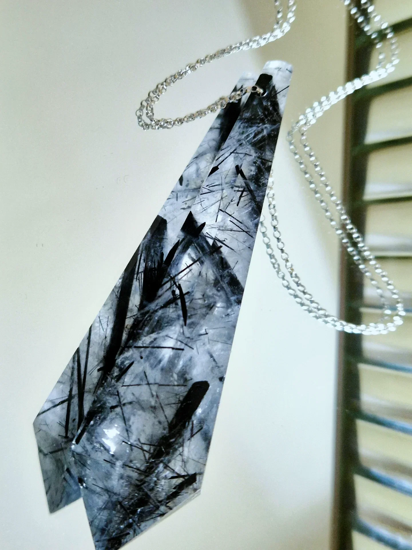 Tourmaline in quartz hand drilled to the top as you can see in photos.