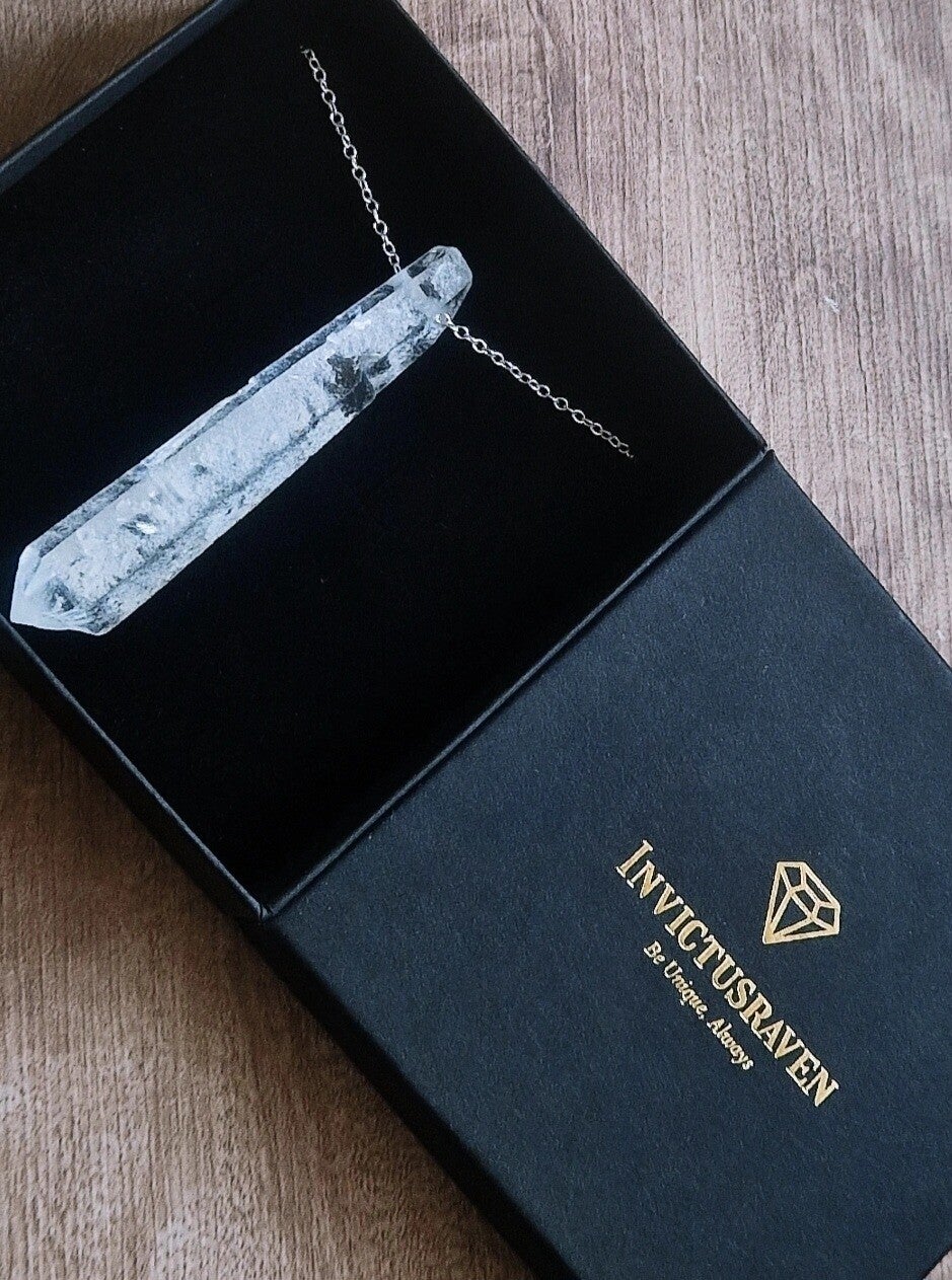 Very nice frosted lemurian crystal drilled through the top & on an 18inch sterling silver chain.