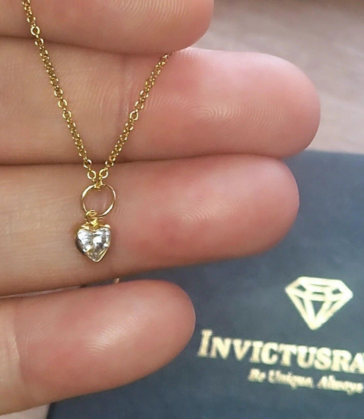Cubic zirconia small dainty heart gold filled necklace on 18inch chain.