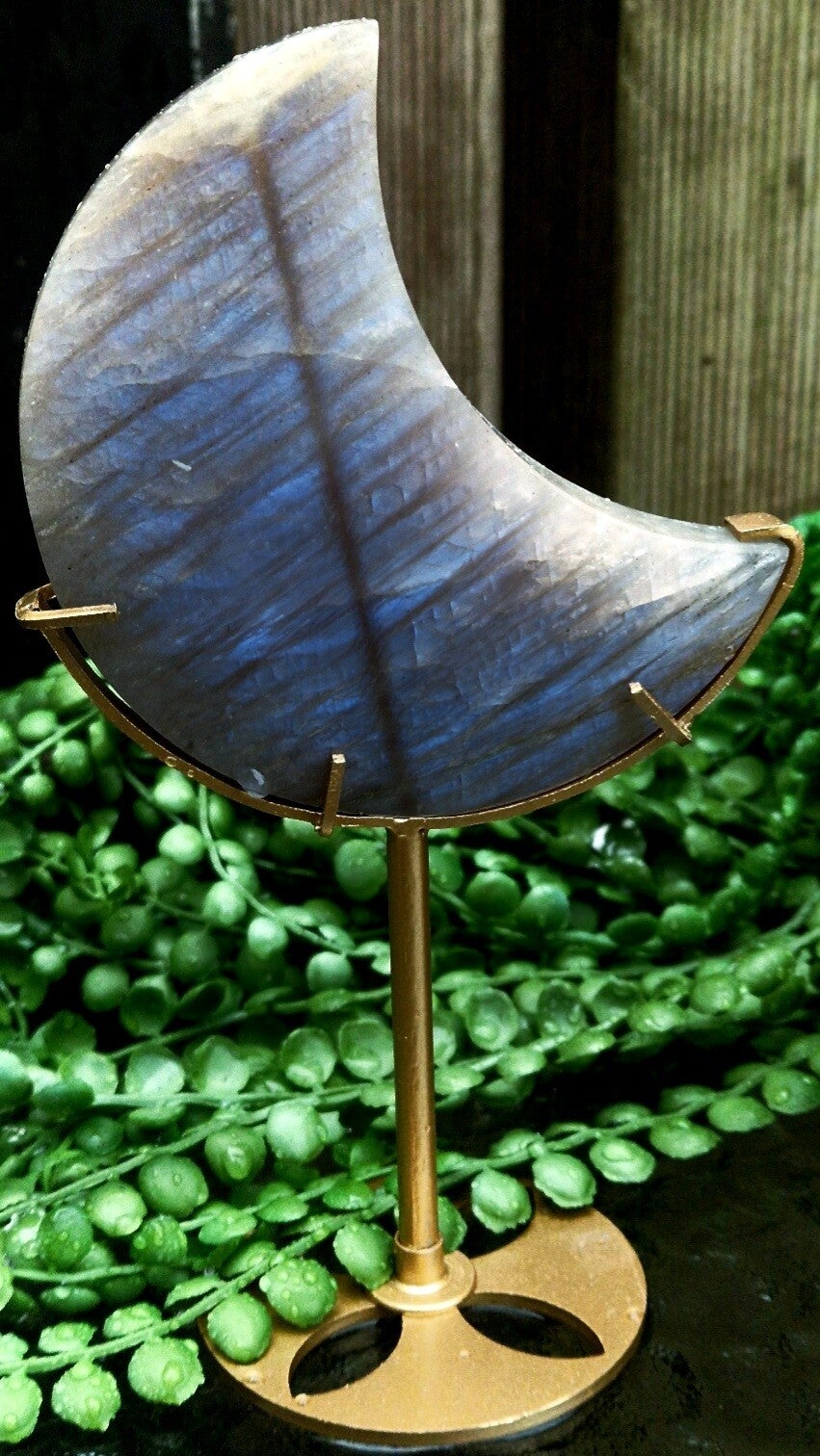 Very beautiful crescent moon on gold custom stand.