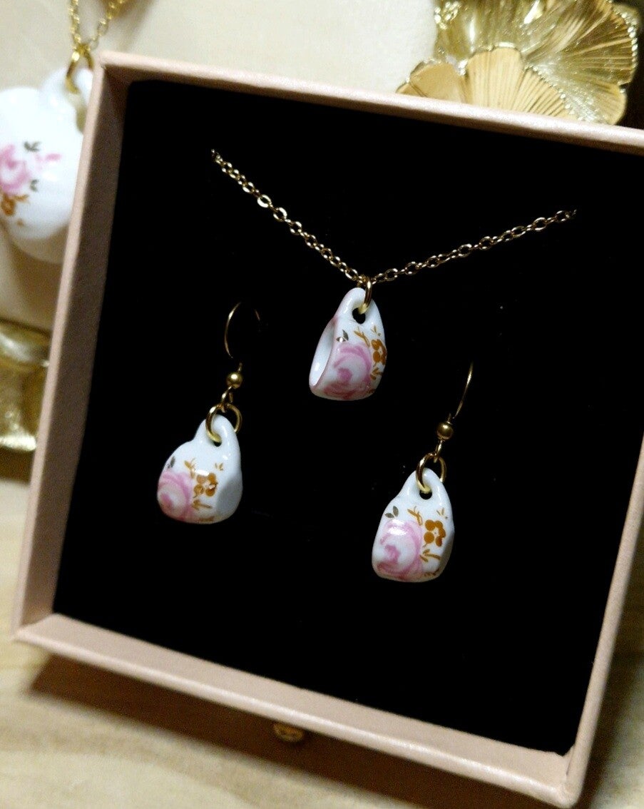 Very pretty little floral teacup set of gold plated earrings & necklace.