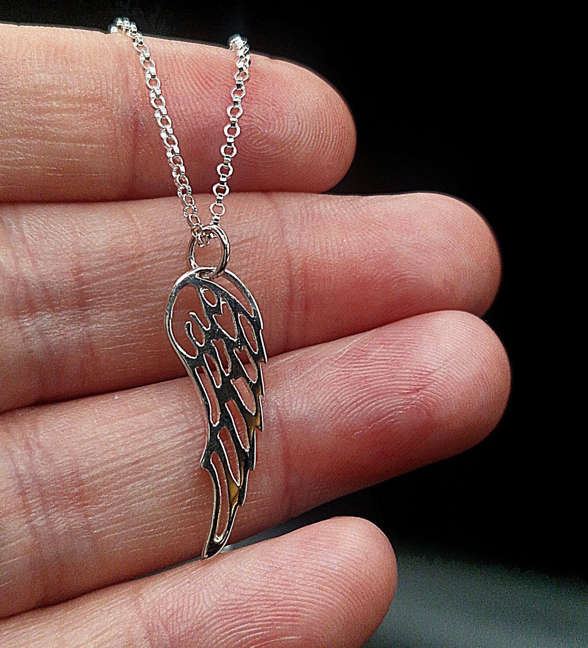 Sterling silver angel wing necklace on 18inch sterling silver chain.