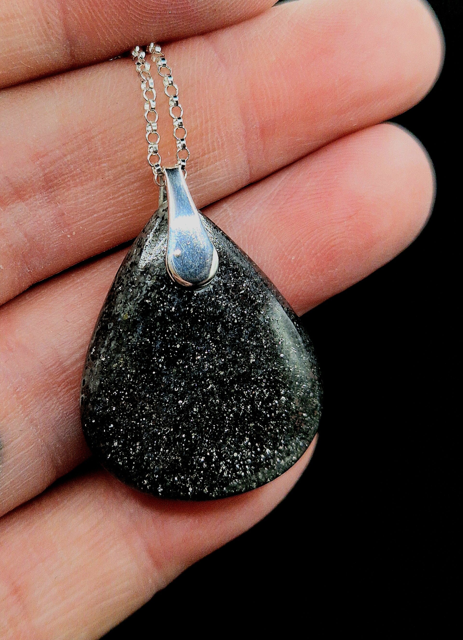 Midnight quartz cabochon on 18inch sterling silver chain.