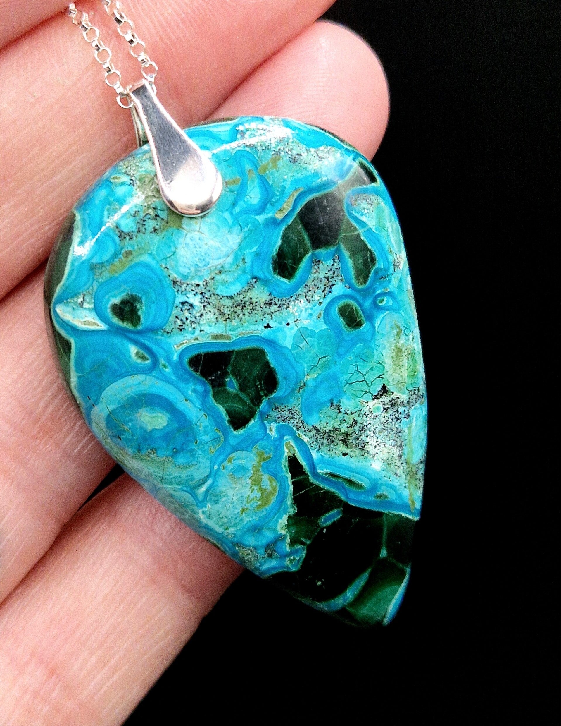 Chrysocolla & Malachite large cabachon on 18inch sterling silver chain.