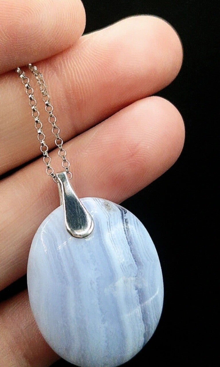 Very nice soft blue lace agate on 18inch sterling silver chain.