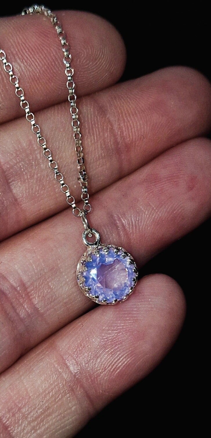 Rare lavender quartz set into a sterling silver bezel and on a sterling silver 18inch chain.